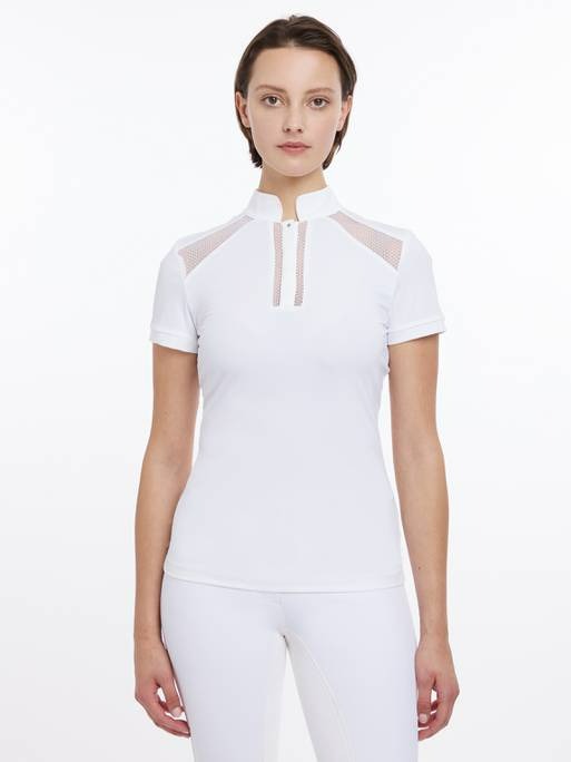 This performance competition shirt is ideal for doing your best when the heat is on. Lightweight breathable crepe delivers superior performance and comfort, even as an under layer.