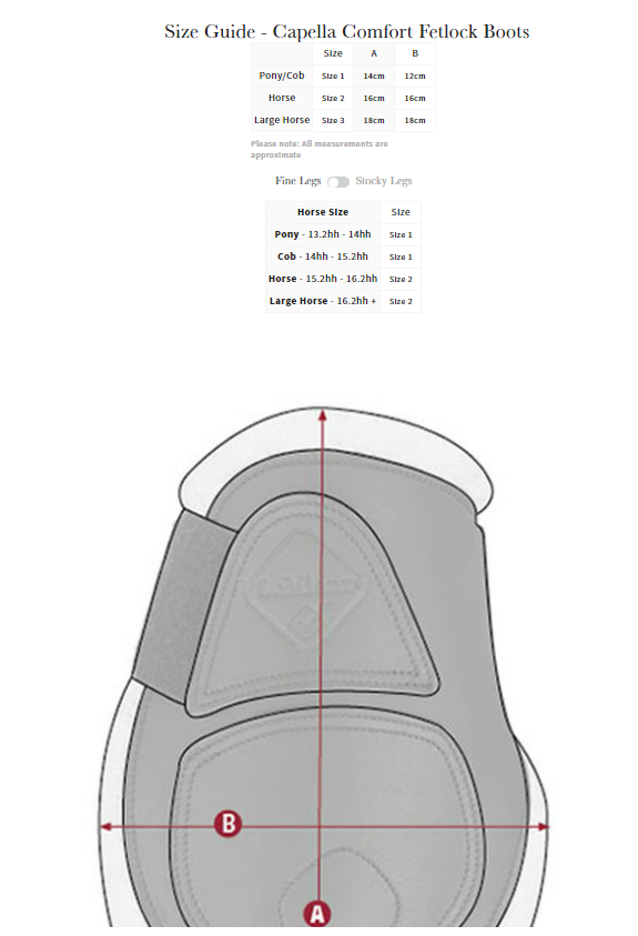 Classical style with cutting-edge protection. These leather fetlock boots are made from top-quality soft leather that moulds beautifully to the leg. The stitching detail defines the key anatomic sections whilst the soft contoured top is cut back to allow no restriction on the tendon when jumping. Designed with low friction EVA lining, these boots give style, performance, and function. Double lock velcro straps ensure the perfect fit and adjustability.