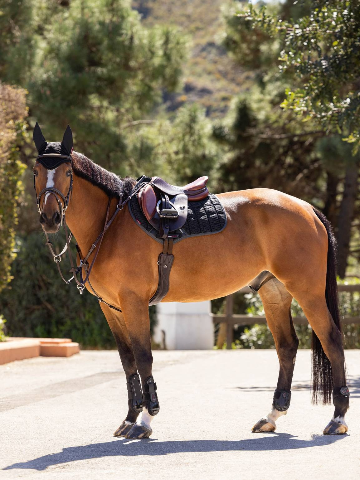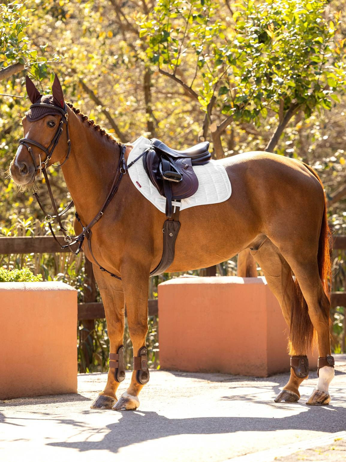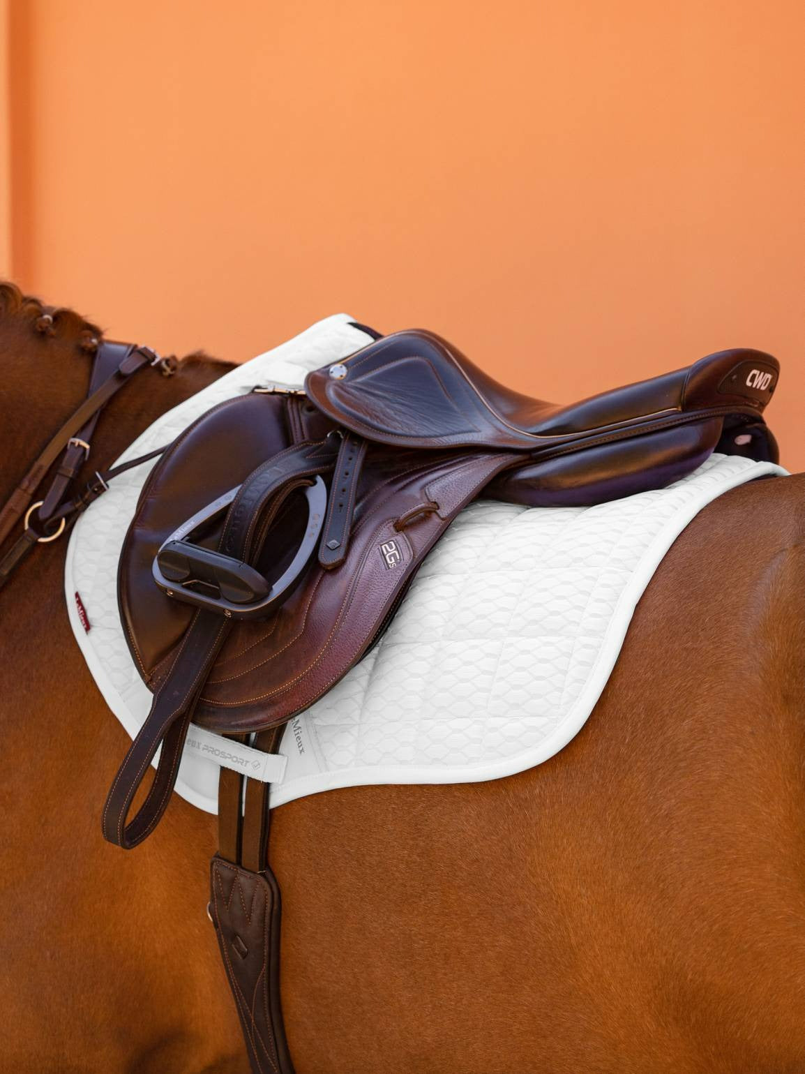Combining the cutting edge LeMieux CC Half Square style and the latest in light weight technical mesh fabrics. The pad is made from a unique 3D mesh which allows maximum air flow through the perforations and has great sweat wicking abilities to keep the horse cool and comfortable.