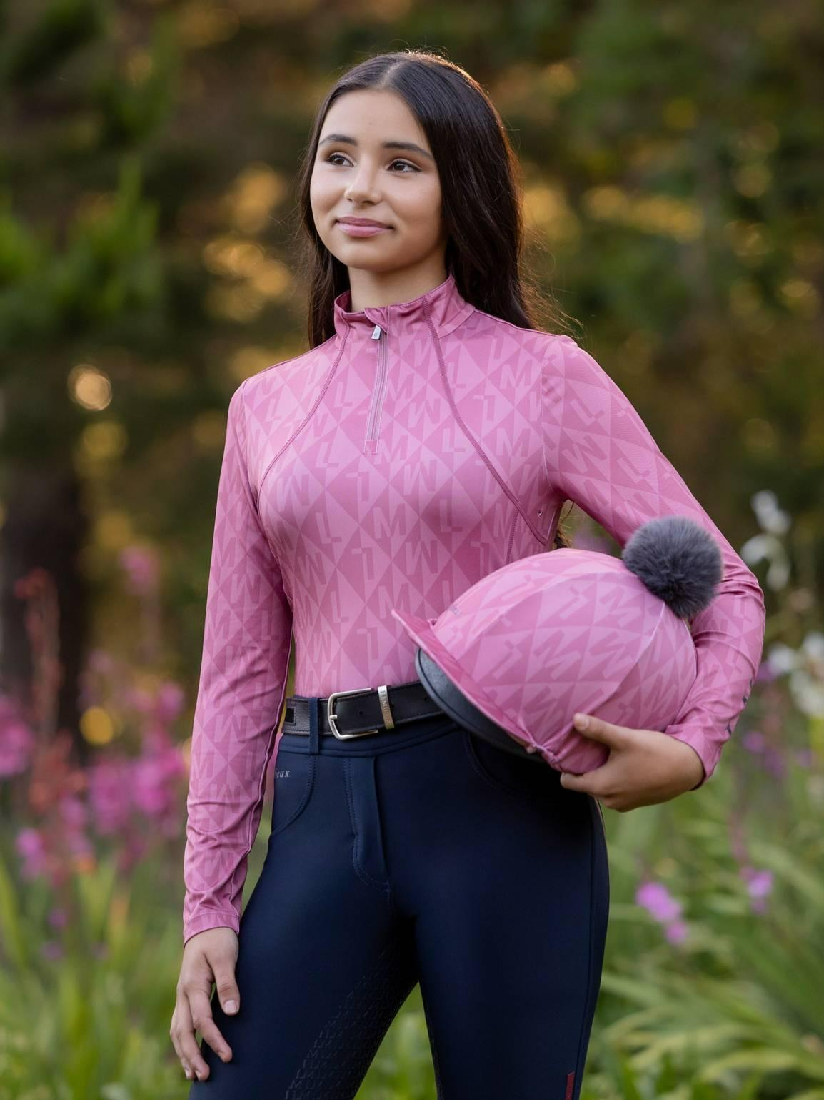 The eye-catching diamond 'LM' monogram print adds a unique finishing touch and has been designed to pair perfectly with the full Clea range of Base Layers, Hat Silks, Footsie Socks and Young Rider clothing.