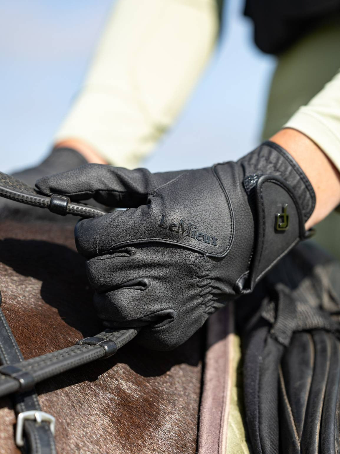 Ideal for riding, the double rein grip and new seam design allow sensitive communication on the reins.
