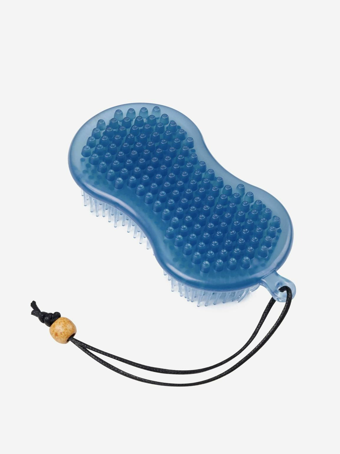 Combines gentle but effective bristle brush on one side with a feel-good rubber scrubby on the other.