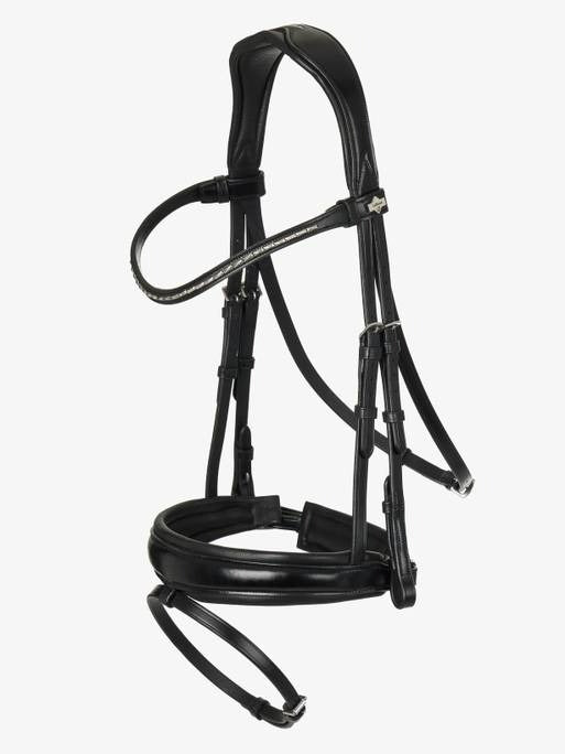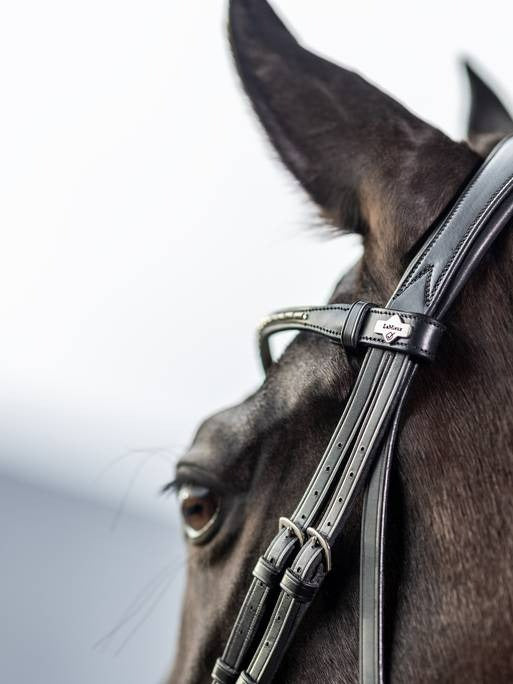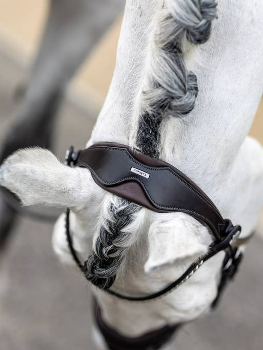 The LeMieux Dressage bridle is a classic example with a contemporary twist and is just made for the ring. The delicate, detachable clincher browband is anatomically shaped and complements the statement padded crank noseband beautifully.