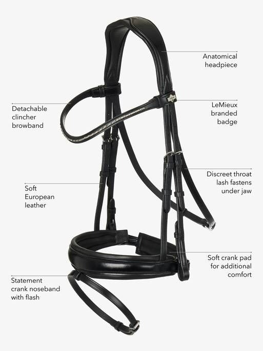 The LeMieux Bridles are made from beautifully soft European leather and feature an anatomically shaped headpiece with soft padded cut away around the ears and poll to aid in the distribution of pressure, maximising comfort.