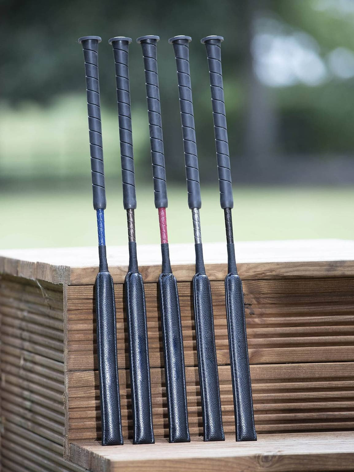 A stylish jumping and general purpose whip with kind, shock absorbing gel end pad covered with soft PU leather. A generous grooved rubber grip handle offers great grip whatever the weather. The whip shaft is counter-balanced making it comfortable to hold and use.