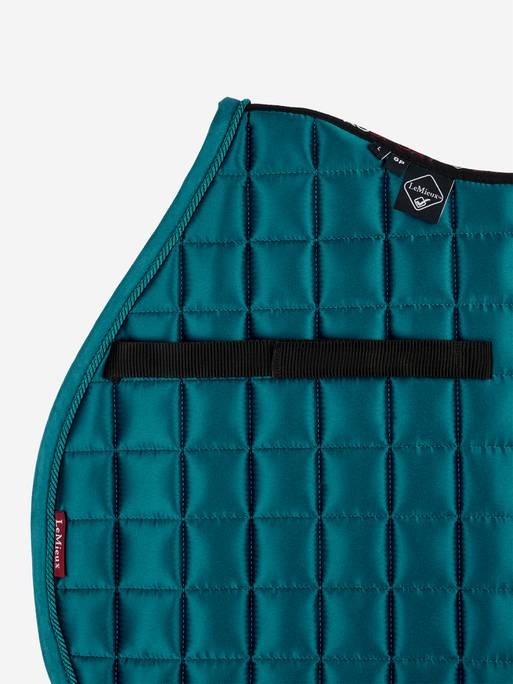 The textured faux leather girth protection area is complemented by an embossed logo and carries the usual signature LeMieux lower girth strap with its inner girth loops.