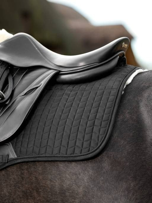 This pad is half-lined with our Australian Merino+ blend (70% Merino 30% acrylic), which, combined with a flexible backing, washes better and dries faster for ultimate comfort and convenience. The dense and soft dynamic wool structure consistently shapes to your horse's back offering breathable support.