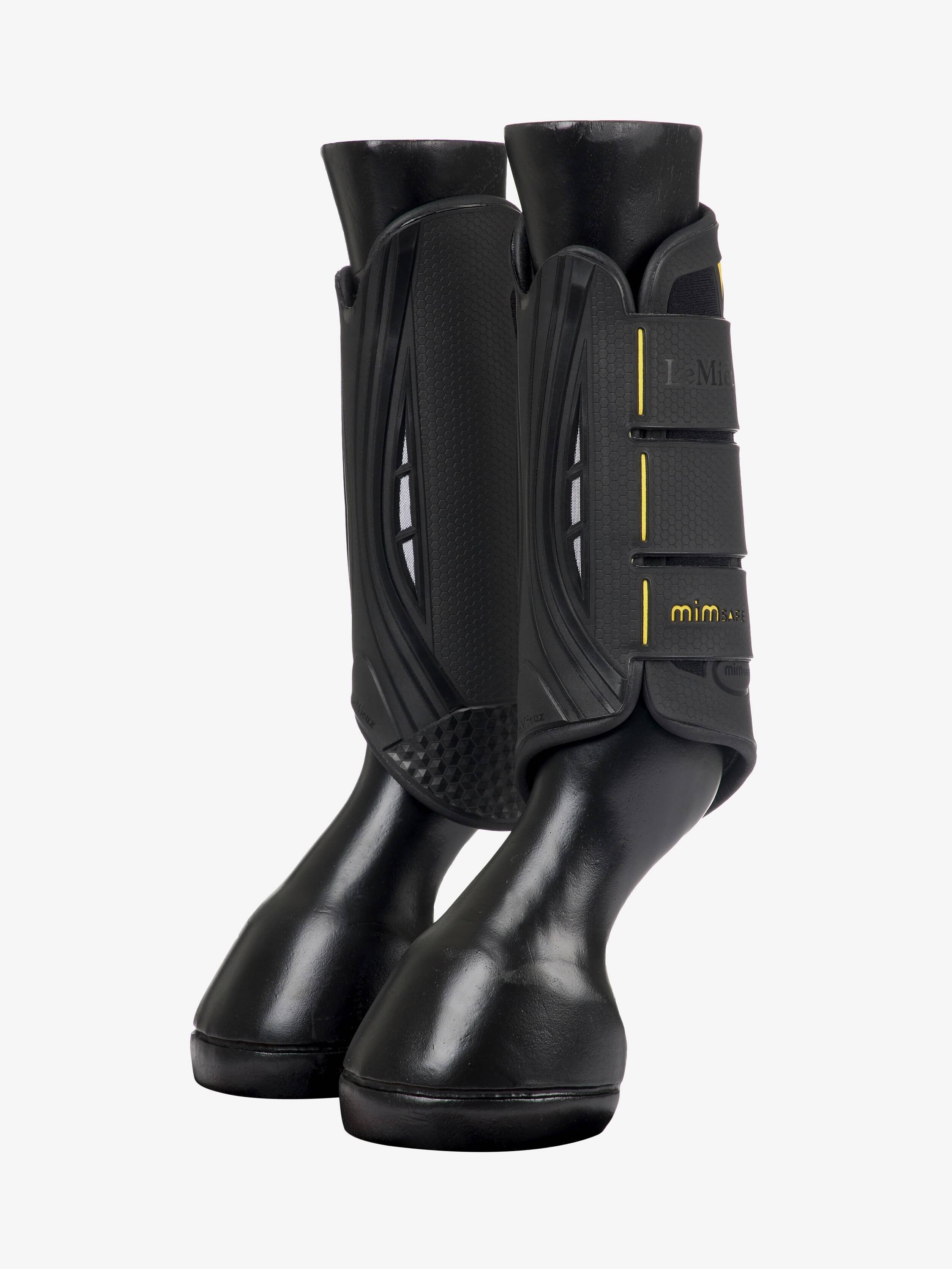 Integrated polythermal resin strike guards are contoured to protect the tendon and cannon bone and uniquely designed to radiate shock away from impact. Adaptive high-density foam lining is soft, breathable and shock absorbent with resistant coating to avoid water uptake.