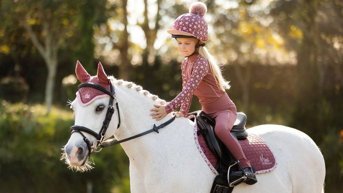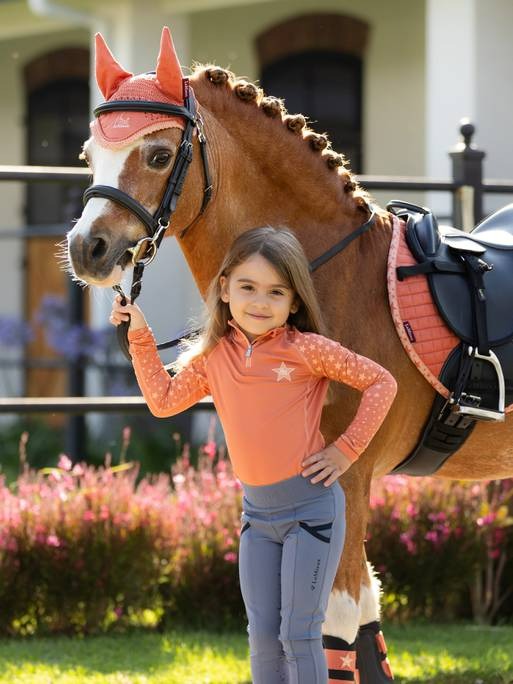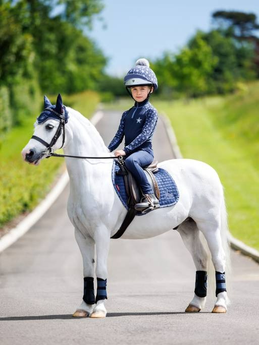 New to the Mini LeMieux range, the Mini LeMieux Base Layer is matching heaven! Designed to co-ordinate with the Mini collection of hat silks, saddle pads, brushing boots & fly hoods with a star design and made specifically for the Mini rider. Sweat wicking, thermal material designed to keep you warm and comfortable whatever the season. The silky smooth anti-microbial material offers a stylish tailored fit and ultra soft seams with flat-lock stitching reduce unwanted pressure points.