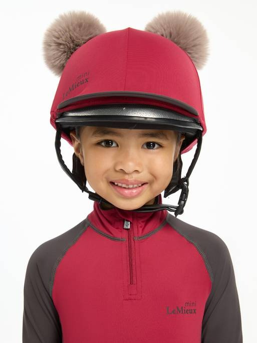 Double the joy for pom pom lovers, with this adorable double pom hat silk with contrasting peak. Made with 360° stretch, it will fit most helmet sizes with a snug and secure look.
