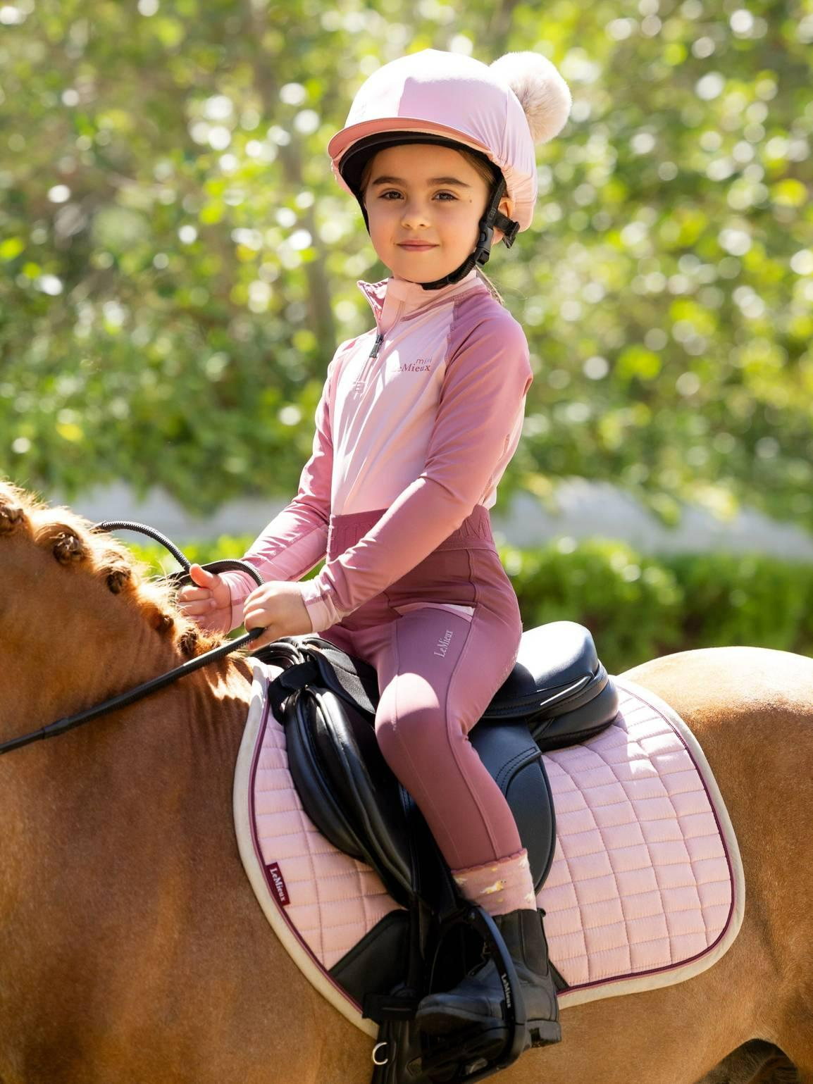 Double the joy for pom pom lovers, with this adorable double pom hat silk with contrasting peak. Made with 360° stretch, it will fit most helmet sizes with a snug and secure look.