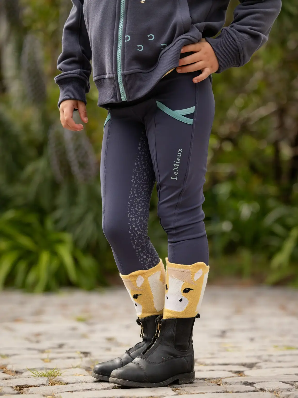 For enhanced security in the saddle, we've added a full seat silicone pattern that provides exceptional grip. Finally, a tapered lower leg design provides extra comfort, cementing these breeches as a must-have for mini riders wanting to improve their horse riding skills.