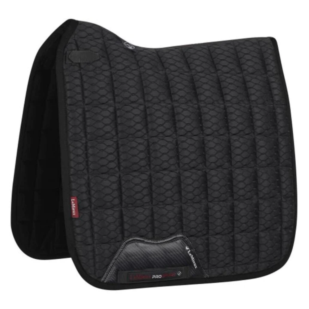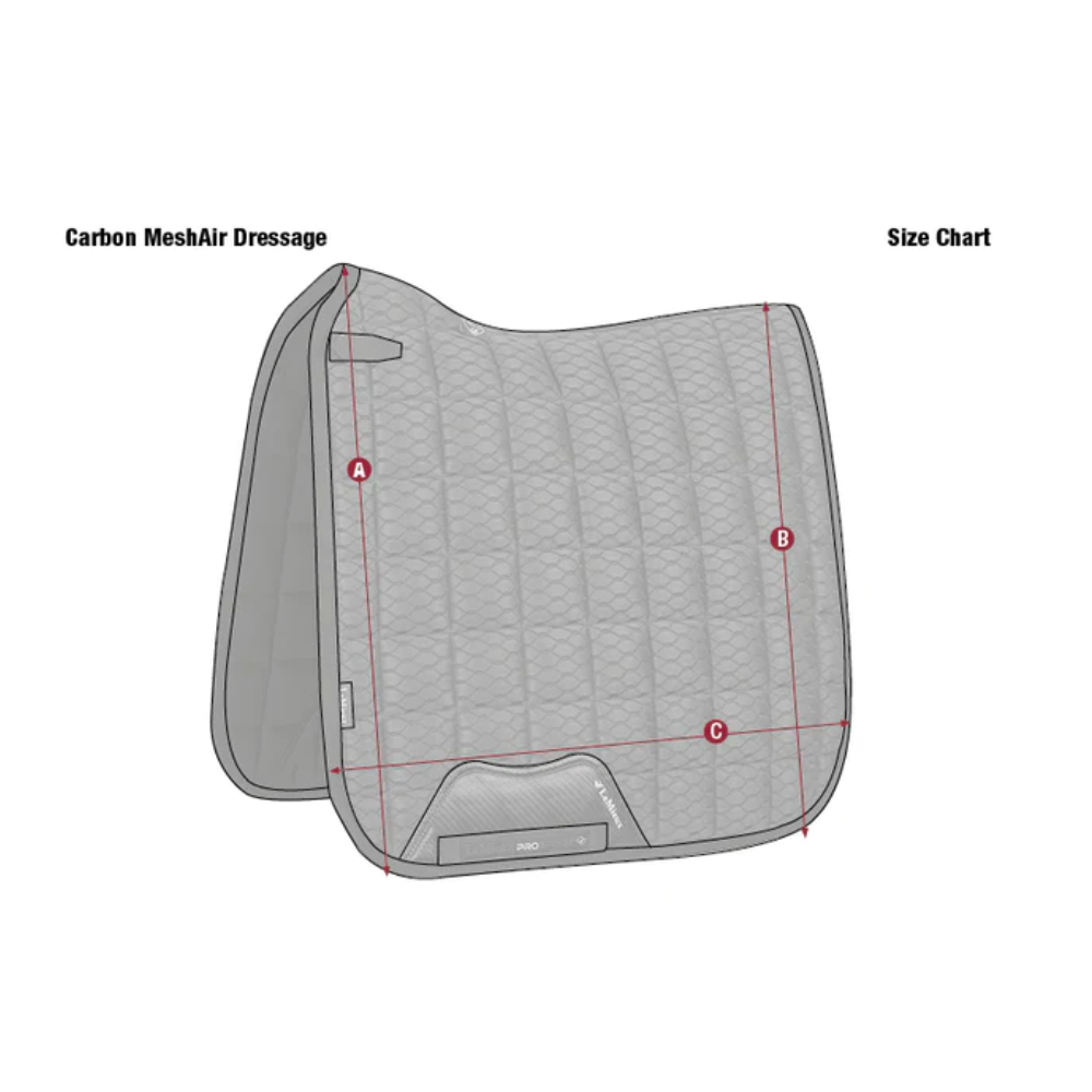 LeMieux Dressage Cut: Experience the timeless elegance of the LeMieux Carbon Mesh Air Dressage Pad. Meticulously crafted with the classic LeMieux Dressage cut, this pad combines tradition with modern comfort for an unparalleled riding experience.