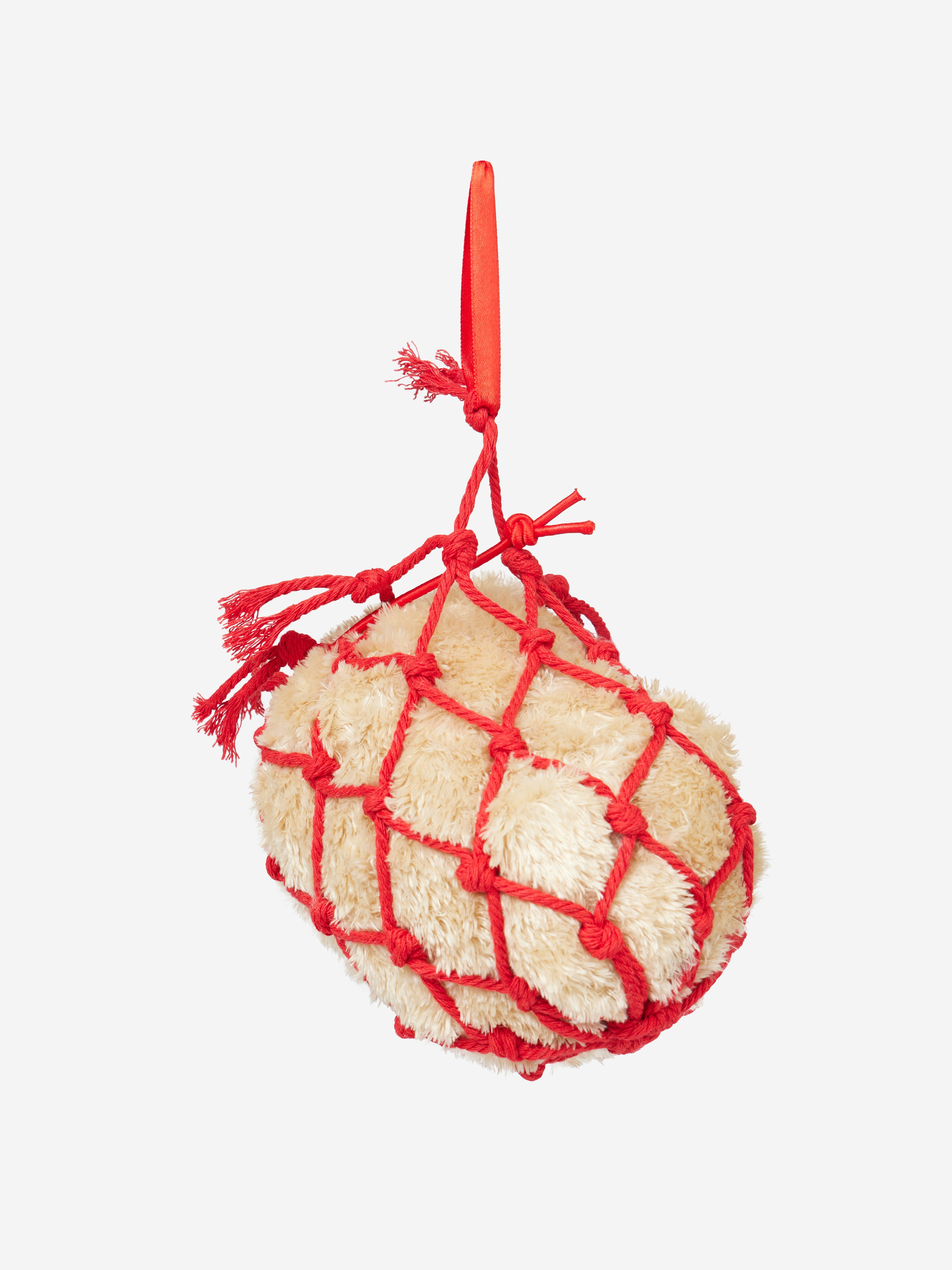 There's an elastic opening for filling the haynet with the fluffy hay bale, and a short hanging loop for safe feeding.