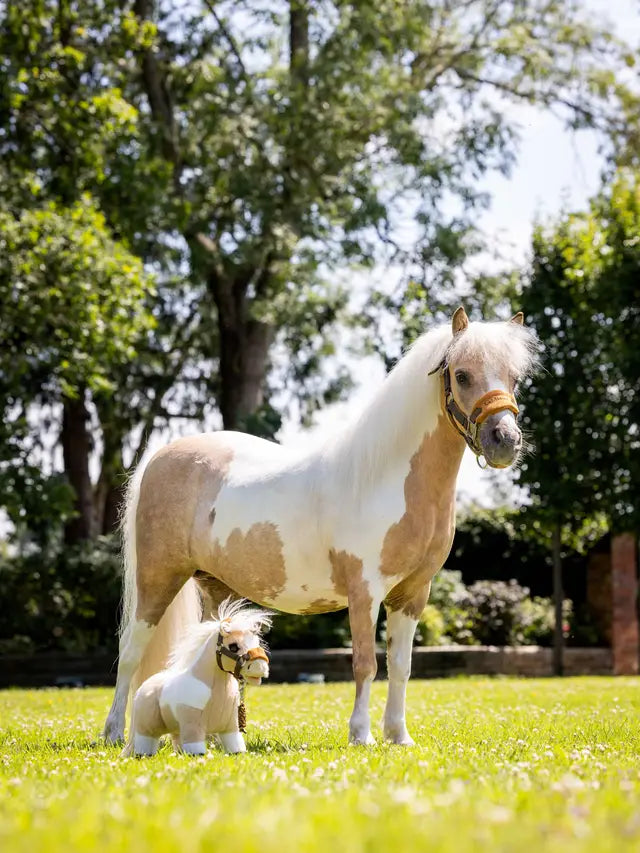 Toy Pony Lemon's palomino and white skewbald coat is super soft – perfect for brushing and looking after. She has a characterful fluffy mane and plaitable tail. She stands securely on all four legs and is flexible, making her safe for children to play with.