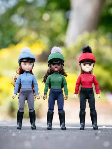 One of three interactive, fully articulated, high-quality equestrian dolls with individual personalities and matching outfits in LeMieux core colours, Chloe has luscious, real-feel, brushable long blonde hair and natural eyelashes. She comes wearing removable replica LeMieux riding wear in Chilli Red, with a removable riding helmet and boots.