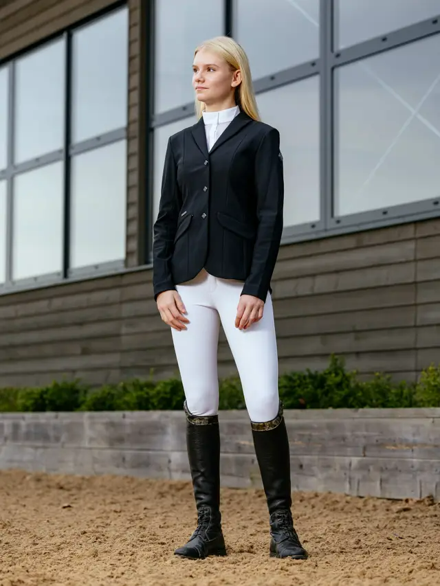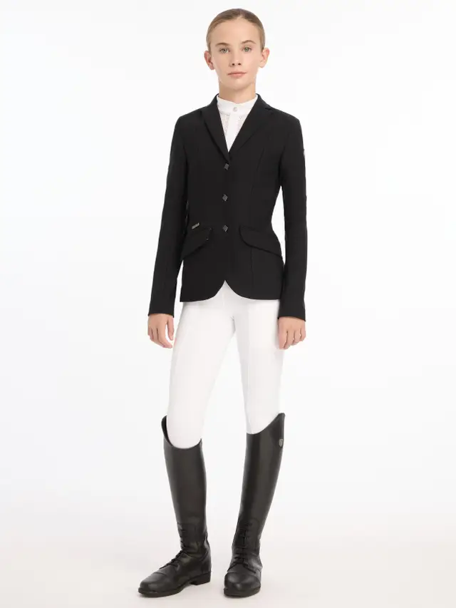 A signature LeMieux premium show jacket, scaled to fit young riders perfectly. Sparkle-free lapels and back belt offer a refined and classic look.