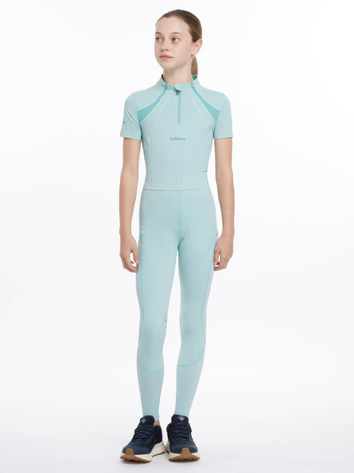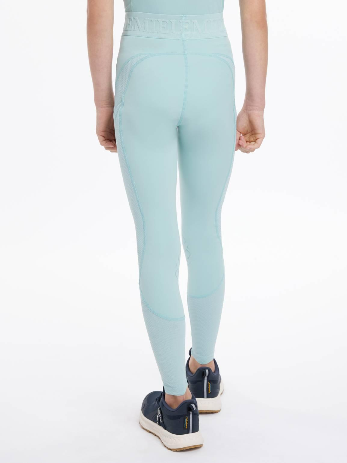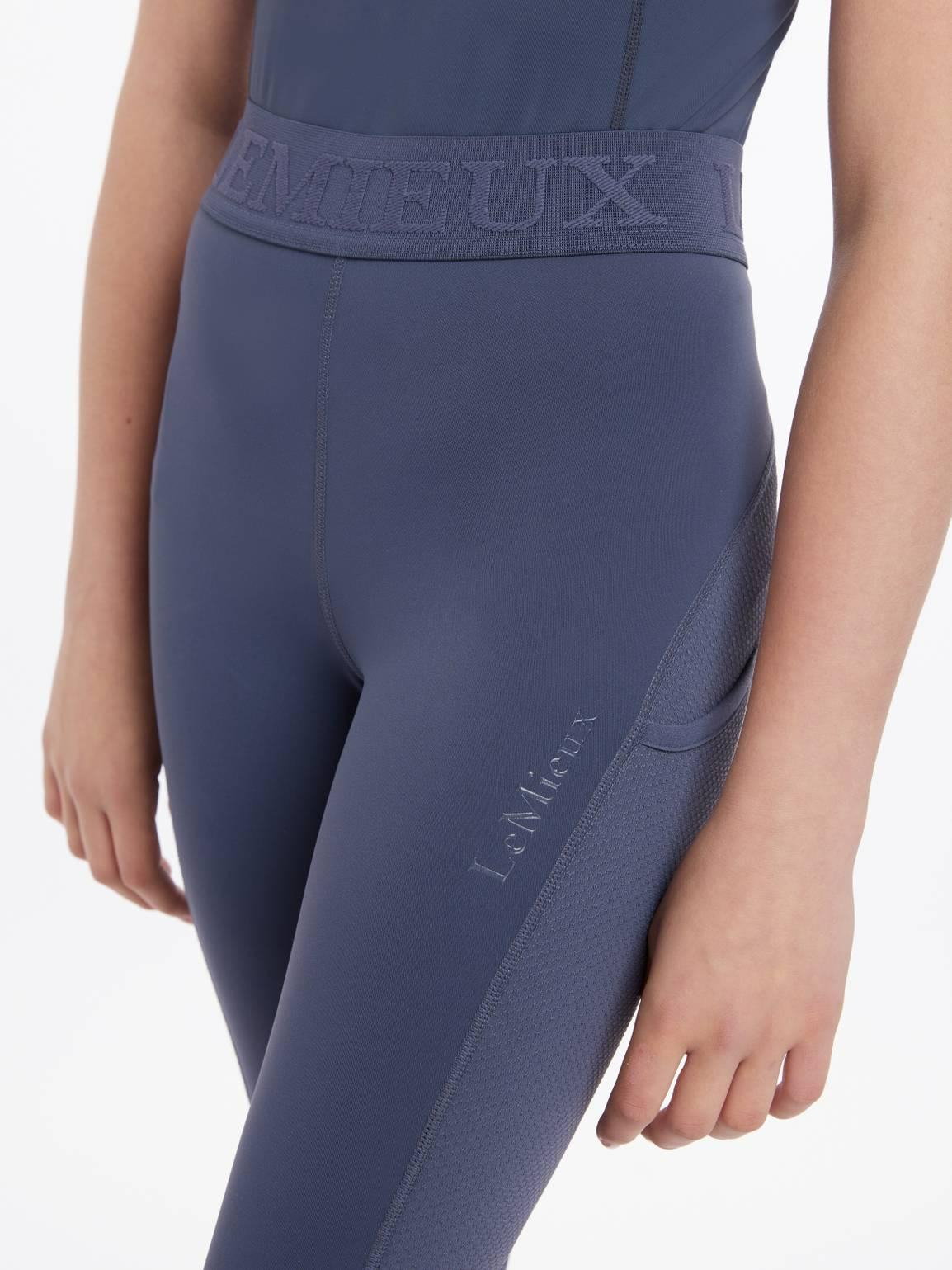 A subtle silicone knee grip offers stability in the saddle, and the sporty LeMieux branded elastic waist is a stylish finishing touch, especially for young riders.
