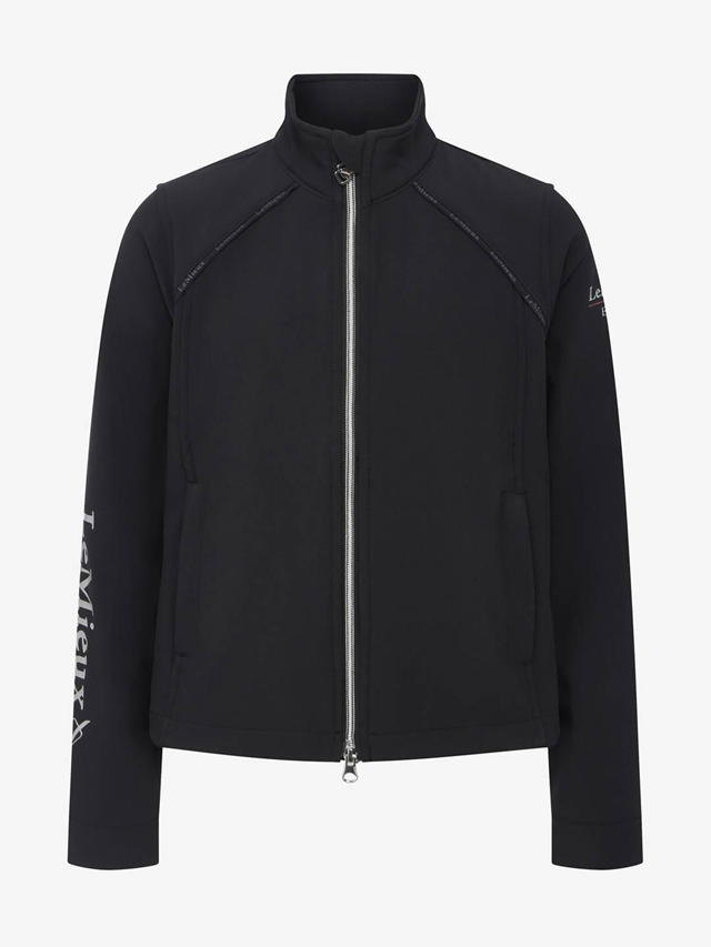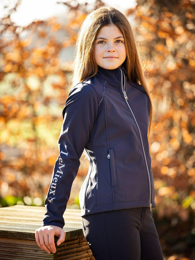 This zip-through jacket allows young riders to experience the comfort and resilience of soft shell fabric. Its technical design, with clean lines and gunmetal finishings, gives young riders a neat and grown-up look, as well as warmth and weather protection.