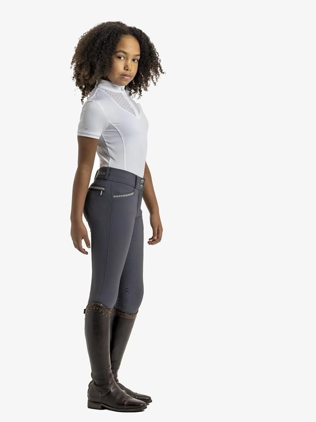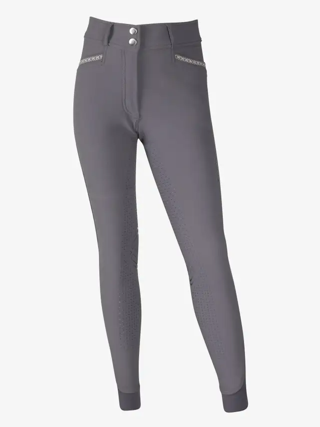 A tapered lower leg design and an anatomic, seamless stretch sock minimise bulk under the boots for all-day comfort. A LeMieux branded elasticated back waist feature optimises comfort while looking neat and smart from the front. A full silicone seat adds security in the saddle.