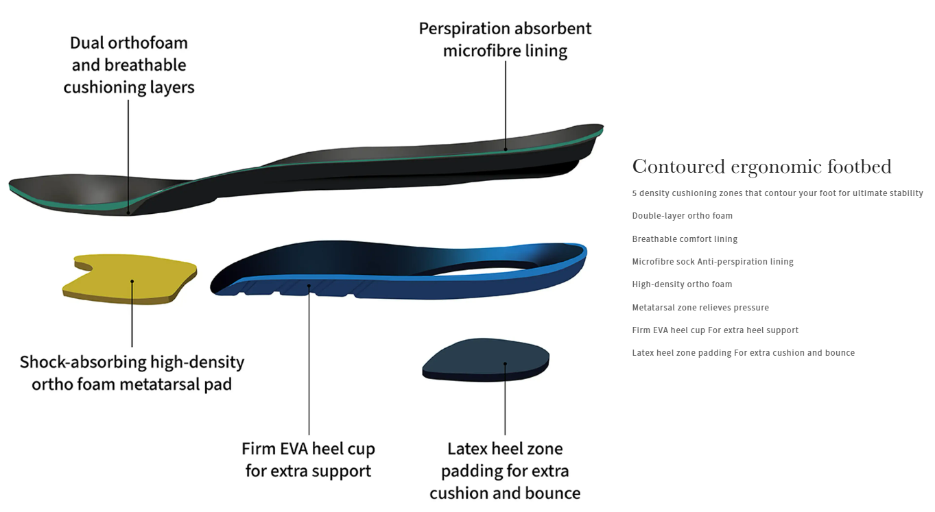Inside, the comfortable 5-density contoured ergonomic footbed provides total support and stability for the entire sole of your foot. A breathable lining delivers all-day comfort for hardworking feet and legs.