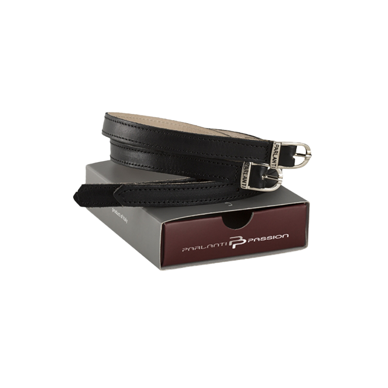 Hand stitched. Leather lined. Parlanti logo on buckle. Available in black only. Comes as a pair.