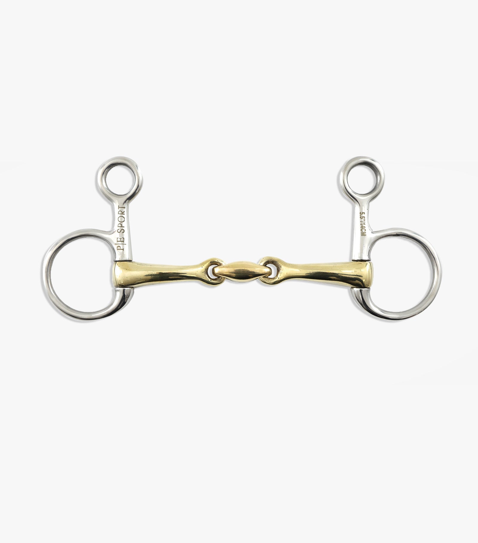 The double jointed brass alloy mouthpiece with lozenge distributes pressure evenly over the tongue and bars of the mouth whilst aiding salivation and reducing the nutcracker action of a single jointed bit. Brass alloy is formed when copper is alloyed with a harder metal, this produces a warm and durable material which is perfect for horse bits as it can aid salivation and be more palatable to the horse.