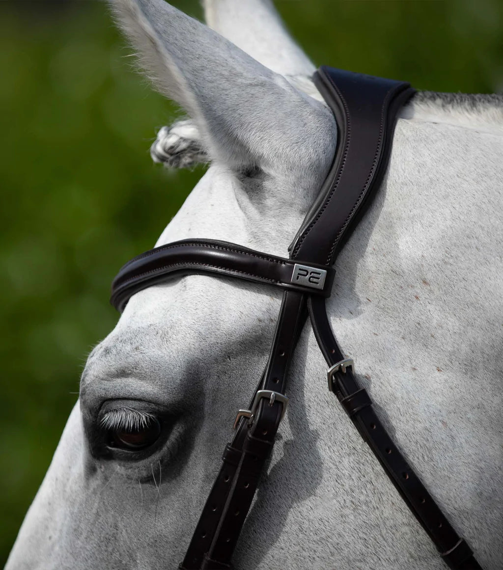 Constructed using high quality Italian leather this anatomic bridle has been carefully shaped to contour around the horse’s ears, nose and cheekbones in order to achieve a more comfortable and ergonomic fit. The anatomically shaped, padded poll piece is designed to distribute pressure over the less sensitive areas of the poll and away from the ears. The browband is also shaped to create definition and features a round raised design alongside soft padding.