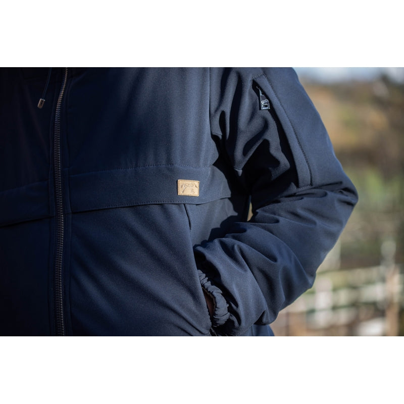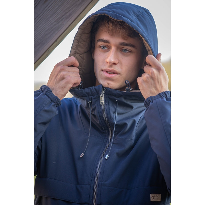 The first Pénélope jacket for men ! Welcome Paulo ! It's a nice reversible jacket : one side with water-repellent fabric and one side with nice padding. There are two pockets on the front and one on arm. There is a well-fitted hood on the back & a tall zipper on the front. We love this contrasting little insert with the little Penelope on the heart. Our Paulo jacket is the best for male Pénélope Collections lovers who love wearing it either at the stable or in the city.