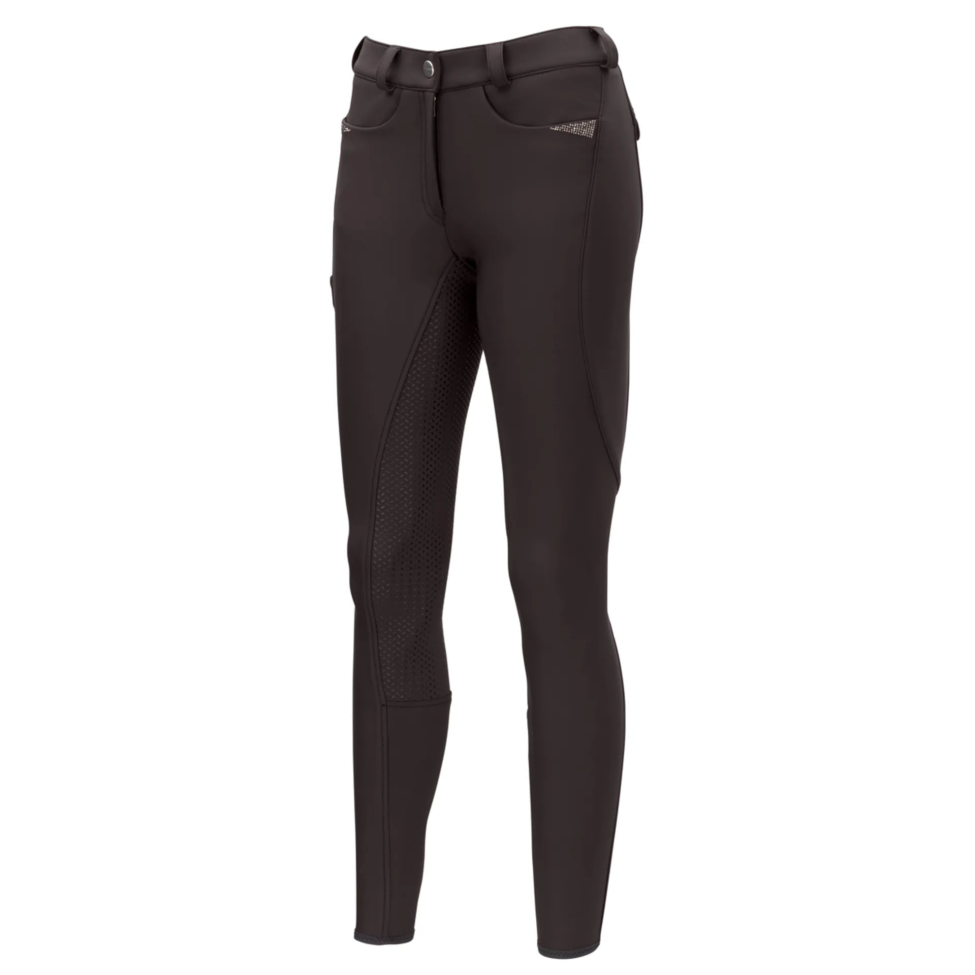 Unleash your style on the riding field with the Pikeur Laure GR Full Grip Breeches. The sporty cut, medium waist height, and integrated mobile phone pocket on the thigh showcase a perfect blend of fashion and functionality. Subtle colour-matching Rhinestone application on fake flap pockets at the back adds a touch of sophistication, making these breeches a stylish choice for riders who appreciate both flair and practicality.