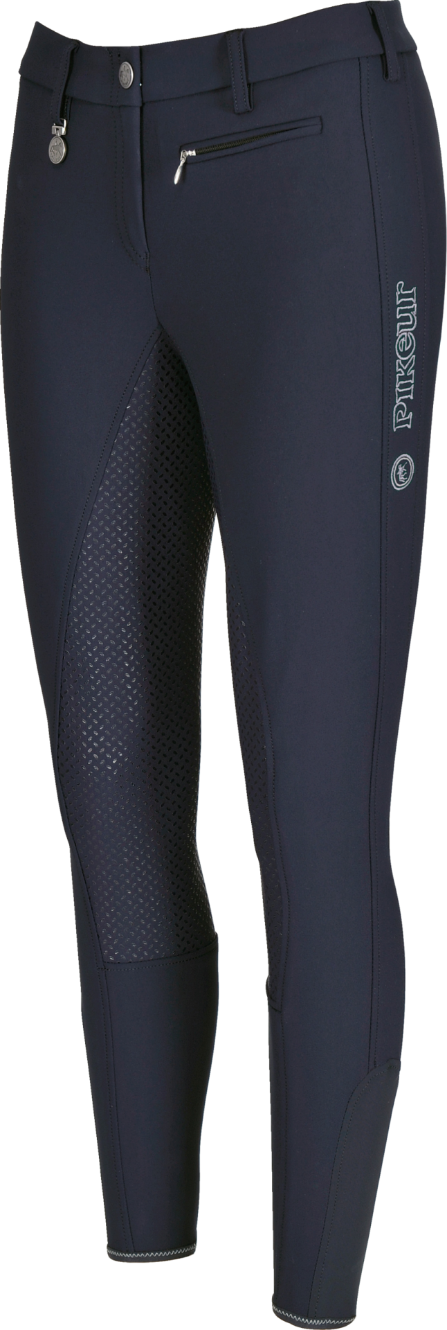 Lucinda with shorter body height, labelled side stripe, stretch ankle finish without Velcro, zip pocket at the front, 3/4 seat panel.