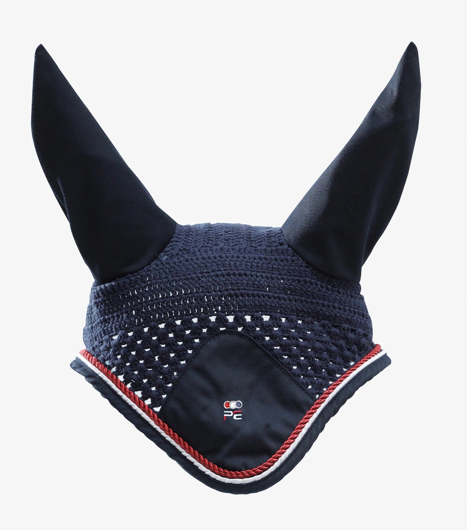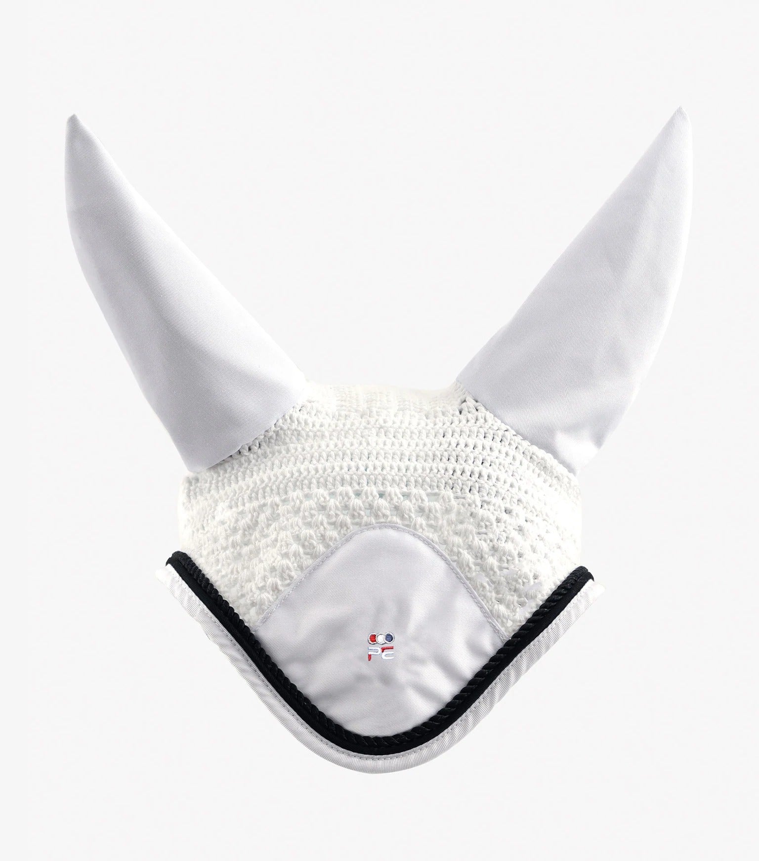 Premier Equine Fly Veils are ideal for keeping insects away from your horse’s ears and reducing noise, therefore increasing focus and concentration. Designed to match our exclusive range of Saddle Pads, providing you with a stylish look at home or at competitions. The soft fabric ear covering is comfortable for your horse, completed by our crochet pattern with contrast piping and ‘PE’ logo to the front.