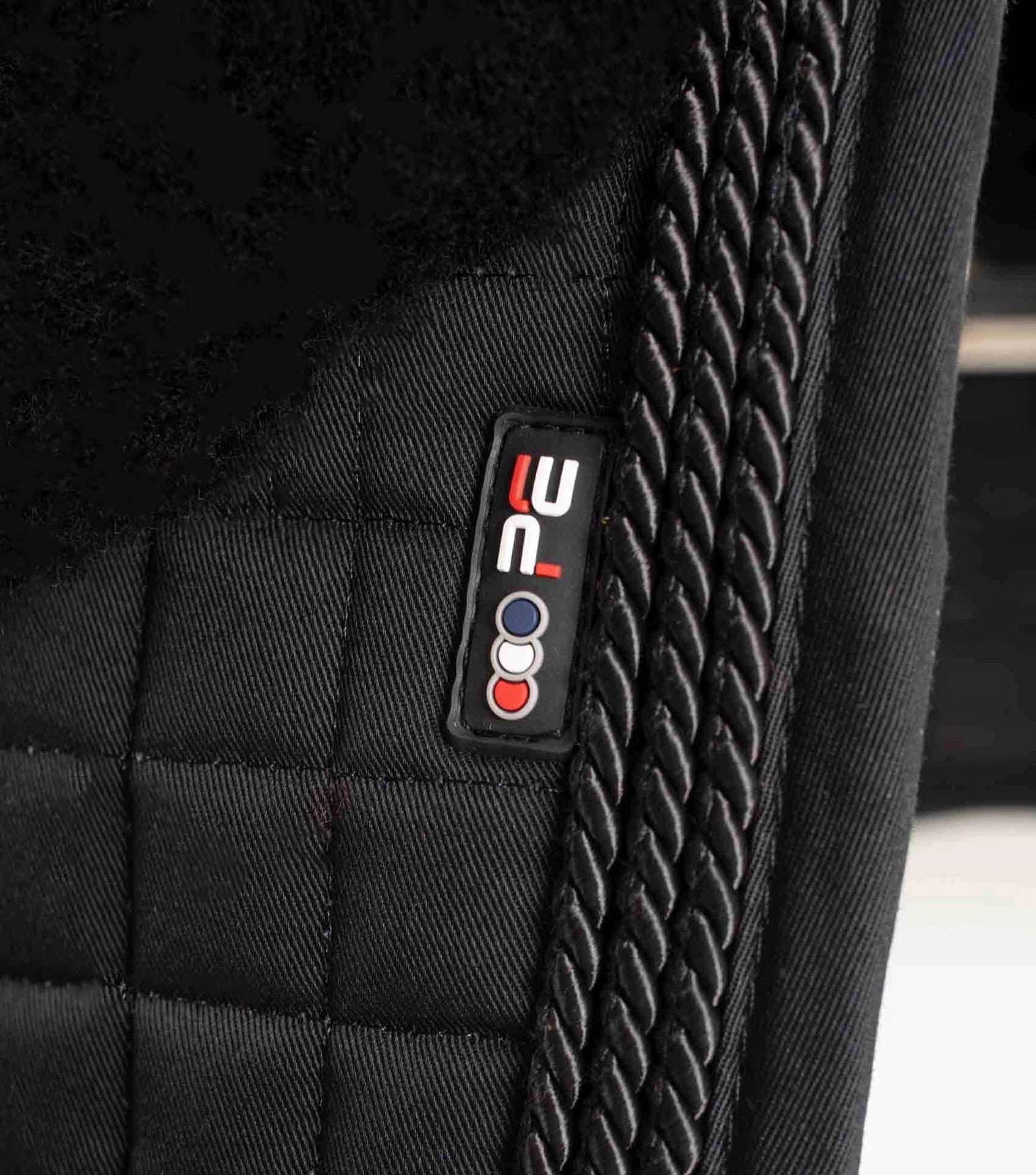 Technical features such as the 600-denier polyester girth cover provides anti-rub protection and double Velcro adjustable straps and adjustable D loop straps help with girthing. Decorative twisted ropes and a European style cut away hem give a stylish and sophisticated look. A truly high-class pony wool saddle pad suitable for everyday or competition use with the advantage of being fully machine washable.