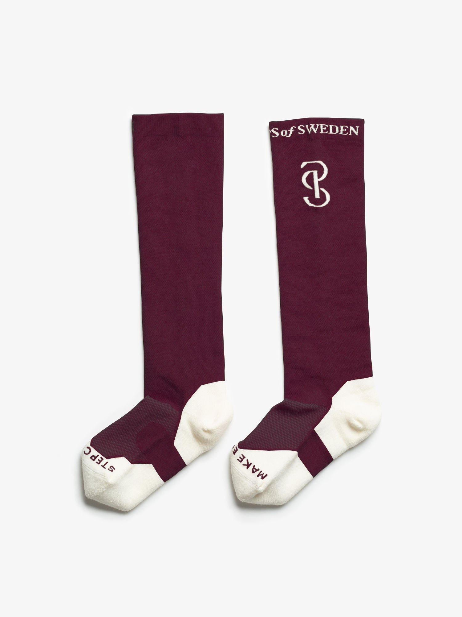 High performance knee-high riding socks in a soft compression pique stitch. Padded comfortable toe and heel reinforcements, with a fine rib in between, and mesh insert at mid-foot.