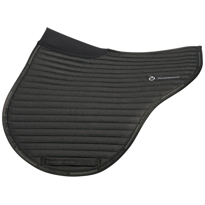 Cavalleria Toscana R-Evo New Shape Jump Saddle Pad - the new revolution of saddle blankets is here! Anatomically cut for extreme comfort and a perfect fit, the brand new design from Cavalleria Toscana is ideal for horses who tend to sweat a lot under regular saddle blankets. Highly breathable and quick drying, the saddle blanket will keep your horse comfortable throughout their training session. A subtle CT logo on the side and along the spine add the essential Cavalleria Toscana touch.