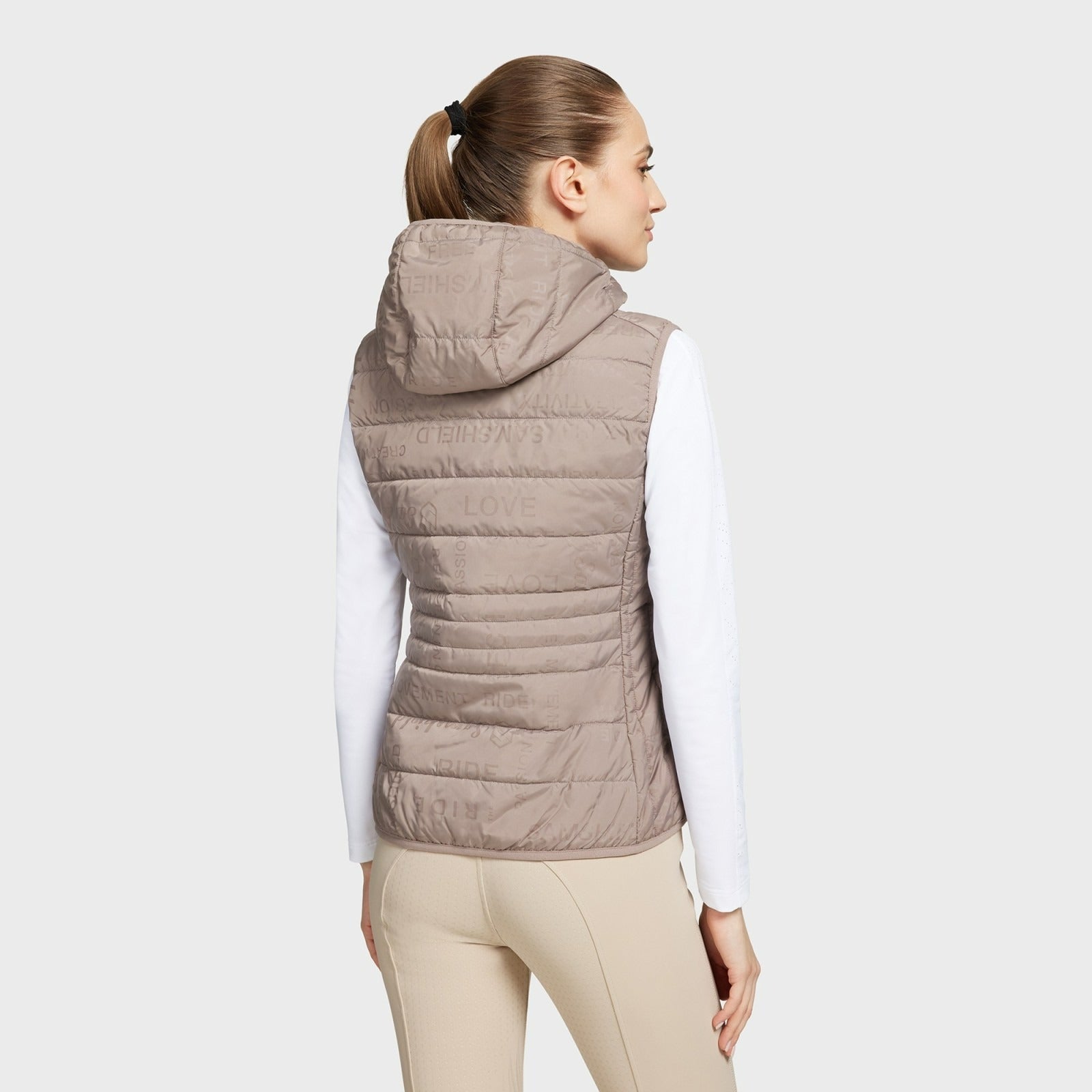 The Samshield Alta Badia Women's Puffer Vest effortlessly blends chic style with practicality. With its contemporary elegance, this vest offers a sleek and tailored fit, complete with useful features like a removable hood and water-repellent fabric. Meticulously crafted, its premium padding is eco-friendly, odorless, and lightweight. Engineered to keep you warm without sacrificing functionality, the luxuriously soft and bouncy material ensures ultimate comfort. The Alta Badia's unique design, highlighted by a subtle Swarovski Samshield emblem and custom print finish, makes it the perfect companion for both training and competition.