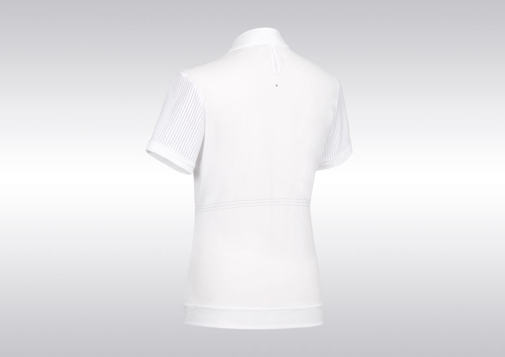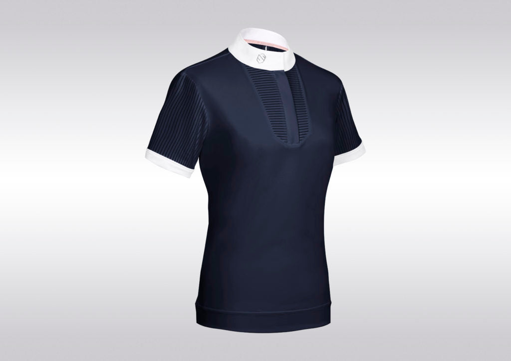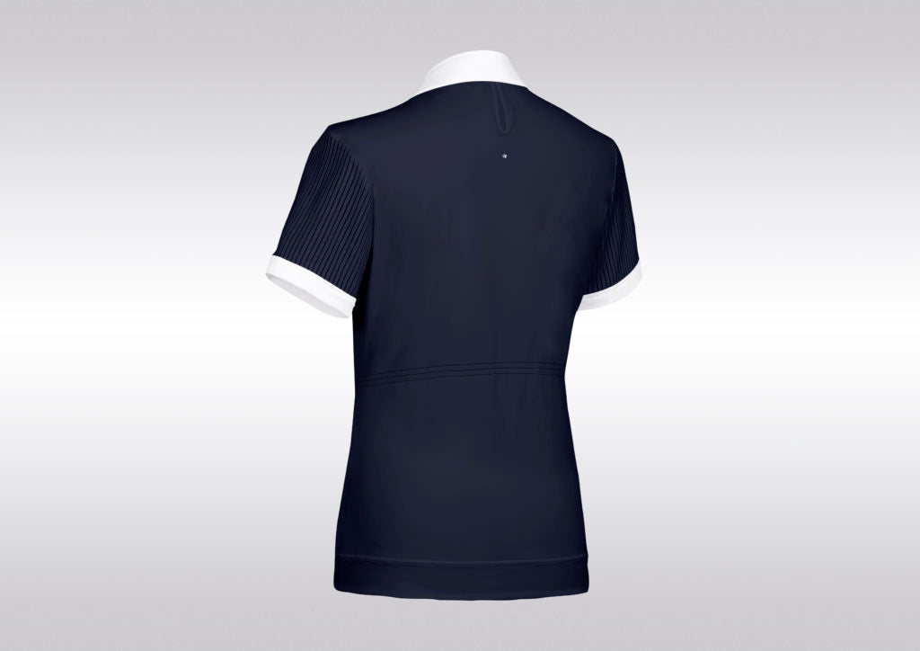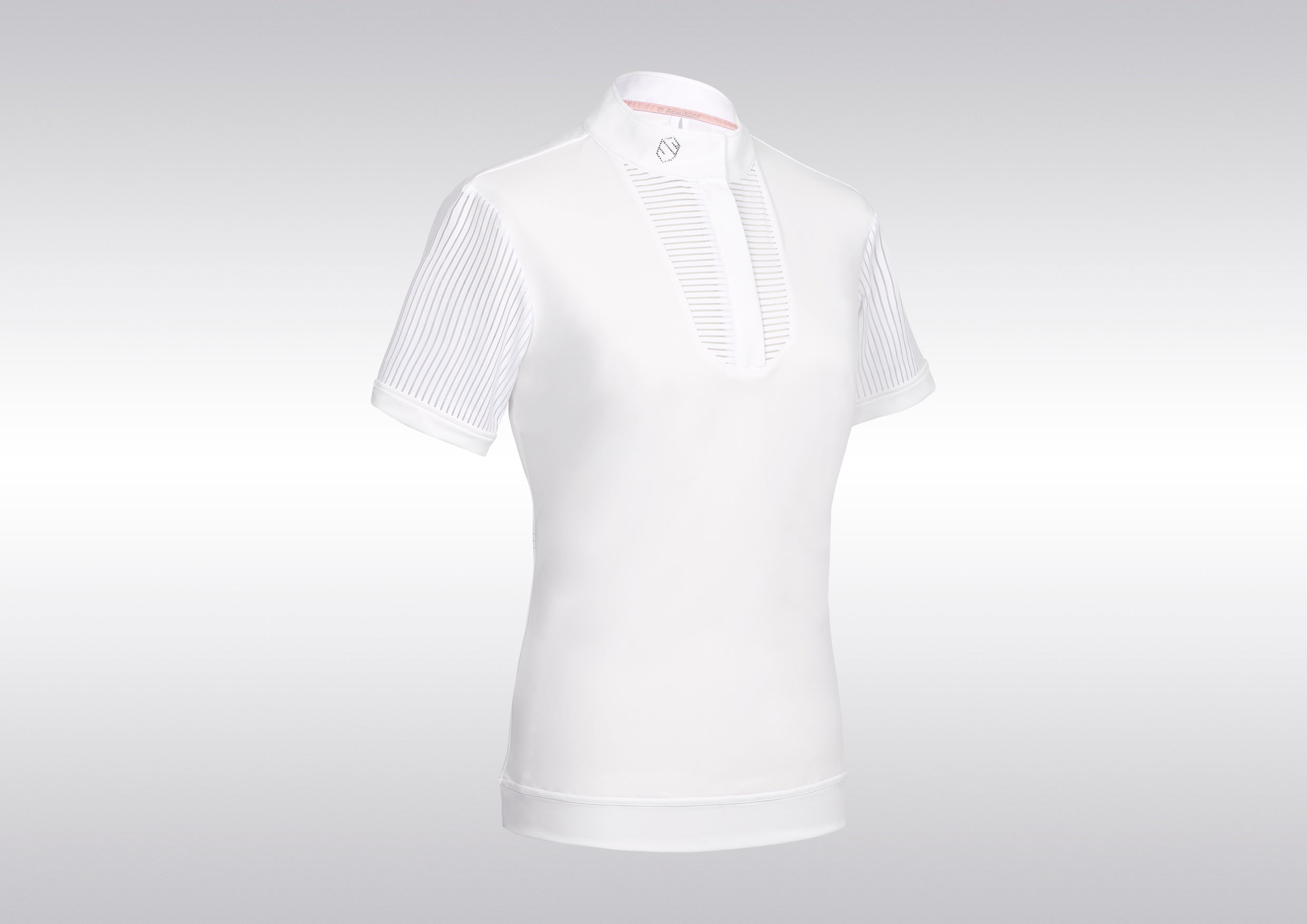 The Apolline shirt is designed with a soft high stretch fabric which provides high breathability and comfort to wear. The tailored fit allows excellent positioning when active. Thanks to the special construction of the fabric the Apolline shirt offers protection against ultraviolet rays. The collar closes with hidden small snaps and zipper. The Apolline shirt is embellished with a Swarovski® Samshield blazon on the collar and transparence fabric on the sleeves and chest providing feminity, elegance and refinement.