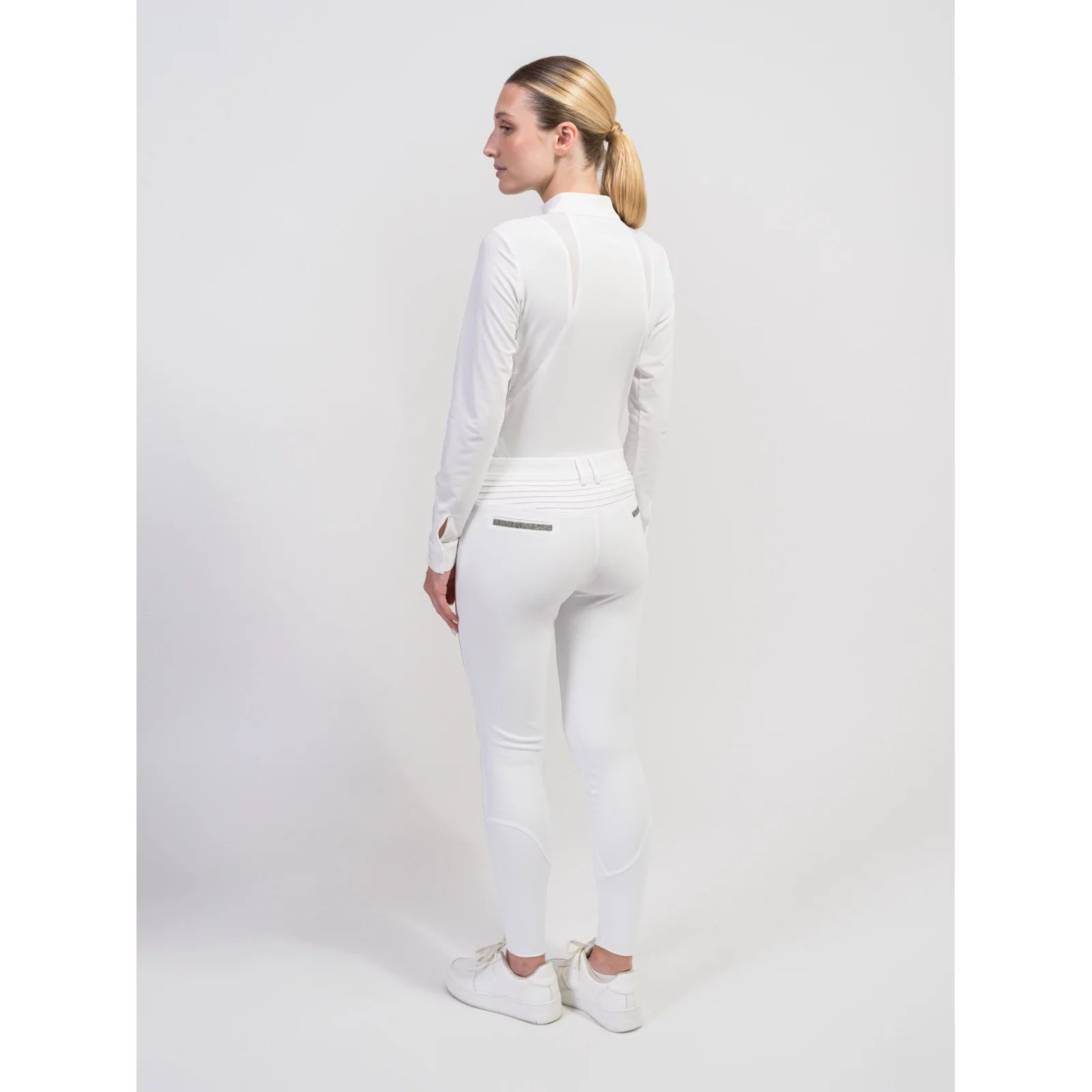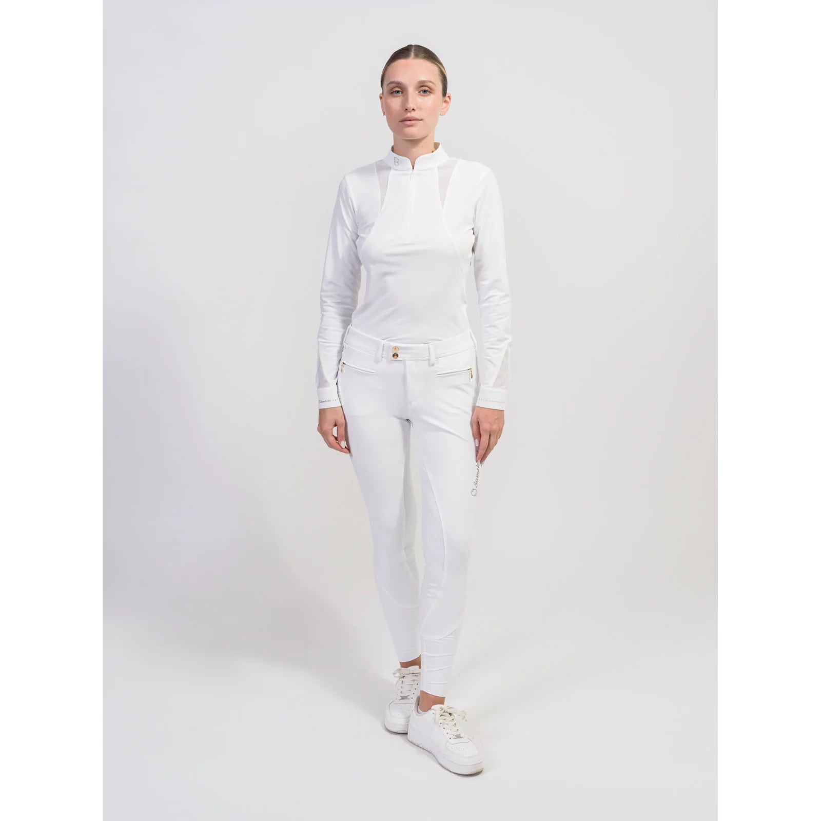 The Samshield Cassandra Air Shirt defines modern equestrian elegance with its seamless blend of style and functionality. Exquisitely designed, this shirt showcases a tailored silhouette thanks to the stylish mesh panels across the shoulders. Crafted from high-quality technical fabric, the Cassandra shirt offers exceptional breathability, stretch, and moisture-wicking properties for optimal rider comfort. Its innovative composition ensures a lightweight feel while maintaining a polished appearance. The shirt features delicate logo detailing, an invisible zippered front, and a crisp collar, adding to its refined aesthetic. With its perfect fusion of contemporary performance and timeless sophistication, the Samshield Cassandra Shirt caters to riders who seek versatile and elegant attire that seamlessly complements their equestrian and everyday wardrobes.