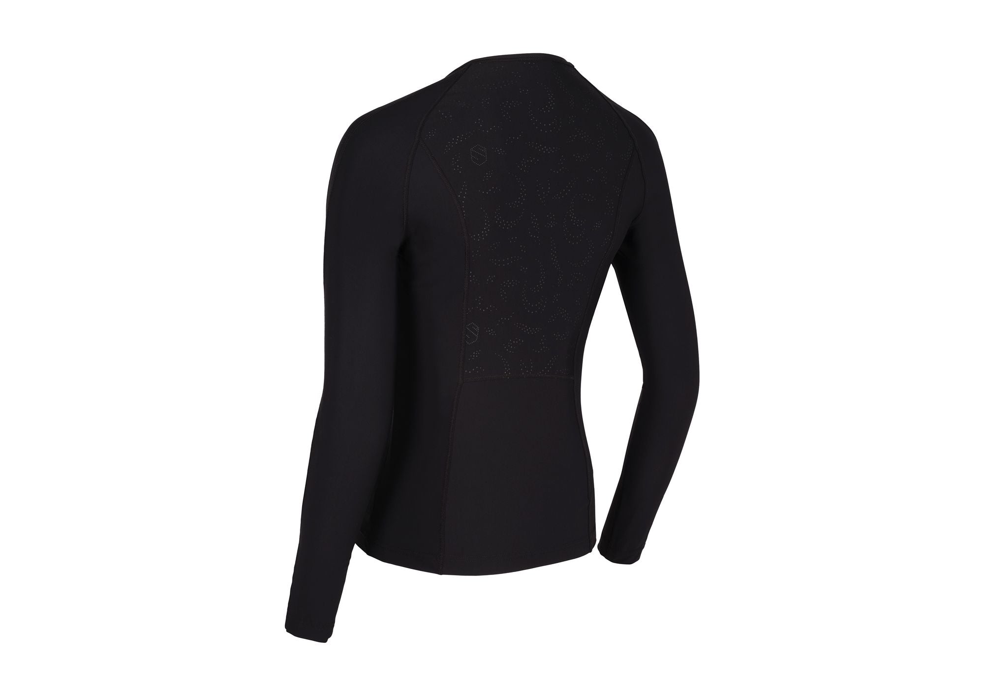 The Evy Glossy is the ideal baselayer for training, offering breathability and comfort through the quick drying, high stretch material. The double top stitching gives durability and the fabric itself is designed to be long lasting whilst being extra fine for additional comfort. The delicate leaf design highlights this garment perfectly down the sleeves and back panel, embellished with Swarovski® Samshield logo. Easy care, machine washable at 30′.