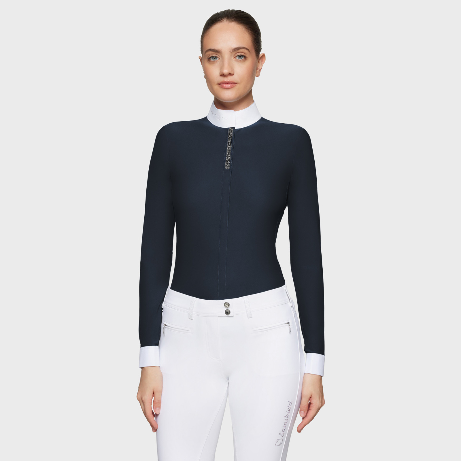 Jella premium women's long-sleeved equestrian competition top. Designed for riders looking for a sober and elegant style.