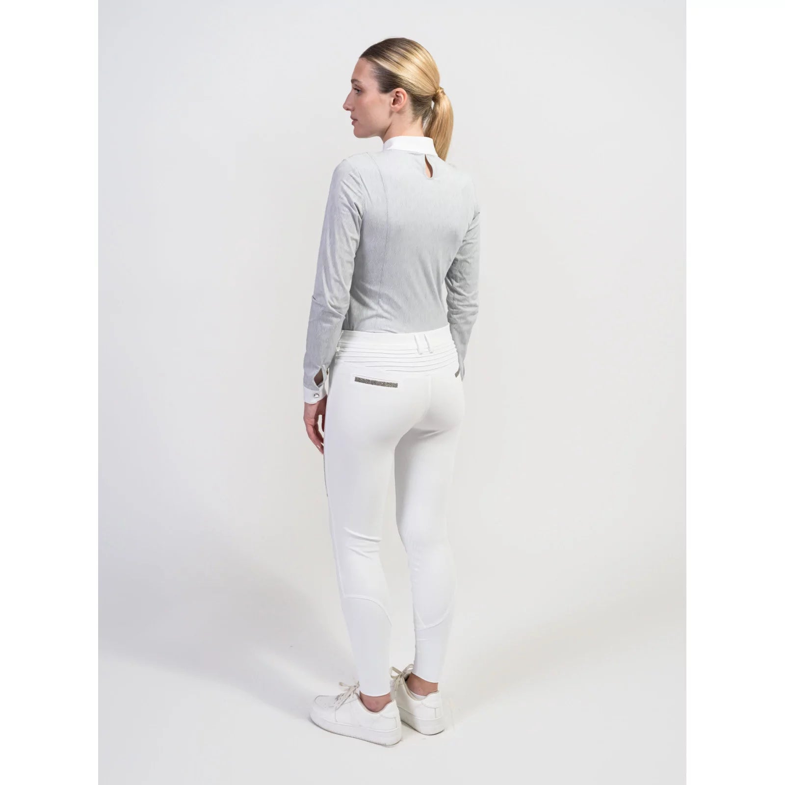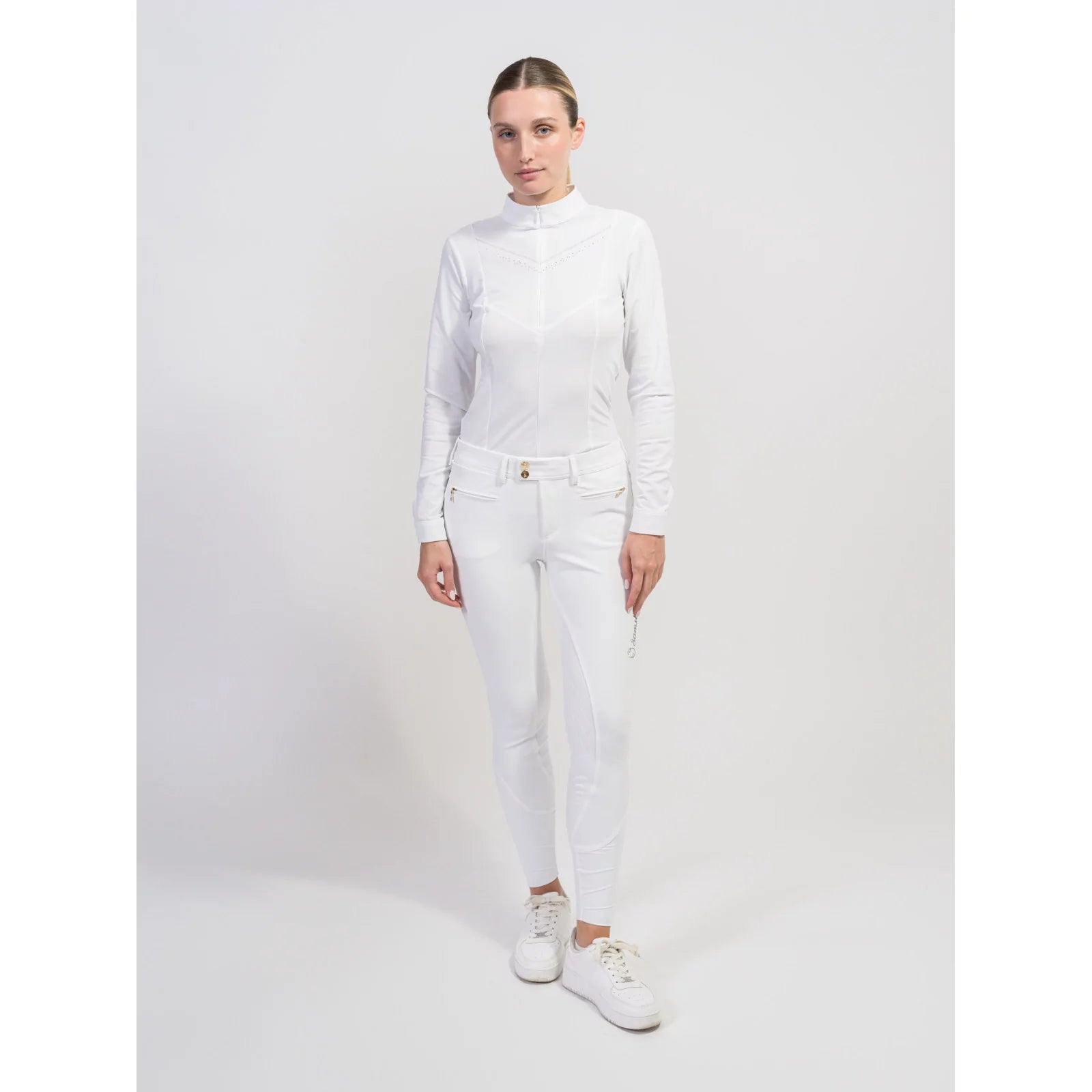 The Samshield Scarlett Long Sleeve Shirt embodies the perfect union of elegance and functionality in equestrian apparel. Constructed from high-quality technical fabric, the Scarlett shirt offers exceptional breathability, stretch, and moisture-wicking properties for optimal rider comfort. Its innovative fabric composition ensures a lightweight feel while maintaining a polished appearance. The shirt boasts subtle yet striking Swarovski Crystal detailing with a bib design, while the invisible zipper and crisp collar add a touch of refinement. With a seamless fusion of modern performance and timeless style, the Samshield Scarlett Long Sleeve Shirt caters to riders seeking versatile and sophisticated attire that stands out both in and out of the saddle.