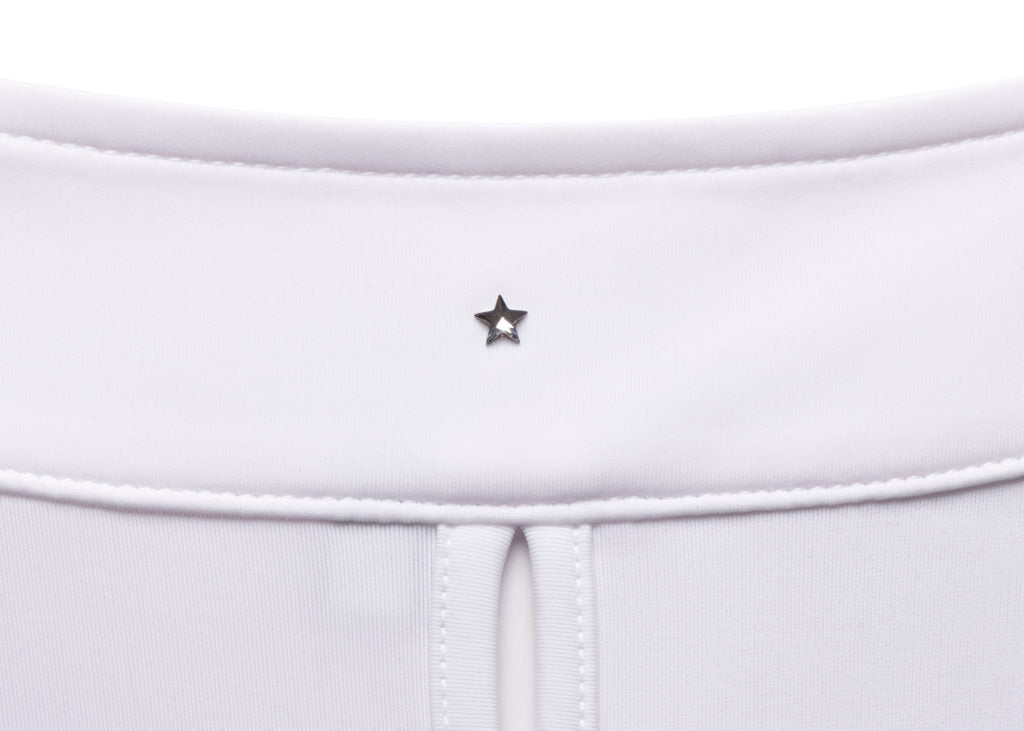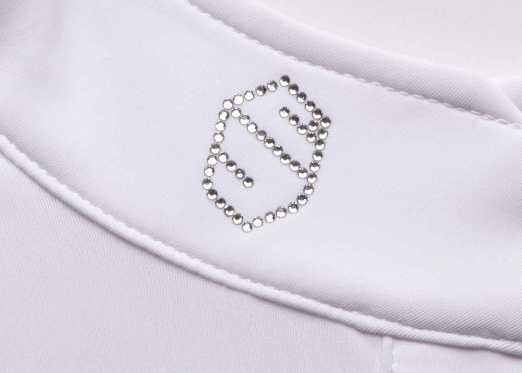 Elegance meets opulence with the Samshield blazon on the collar adorned with Swarovski® crystals. The subtle sparkle adds a touch of glamour, making the Sixtine polo a statement piece. Every detail, down to the hidden small snaps, is meticulously designed for an aesthetic that resonates with the grace of equestrian pursuits.