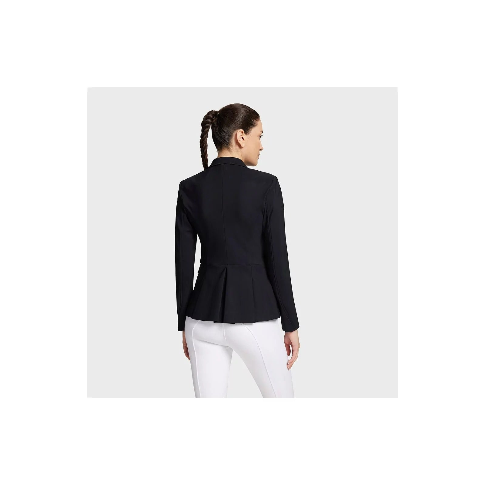 The Victory Sculpt jacket from Samshield combines style and elegance in one. Using innovative bit material design, Samshield incorporates lightweight and breathable fabric that offers muscle support, additional shaping for a flattering fit, and a 4-way stretch lining for a second skin feel. The jacket features an asymmetrical cut, shorter at the front with a fan finish at the back, adding comfort and style. A hidden zipper closure behind the buttons enhances the fit. It's easy to care for, machine washable at 30°C, and environmentally friendly with EPD Certification. Plus, it's compatible with Helite Airbag technology.