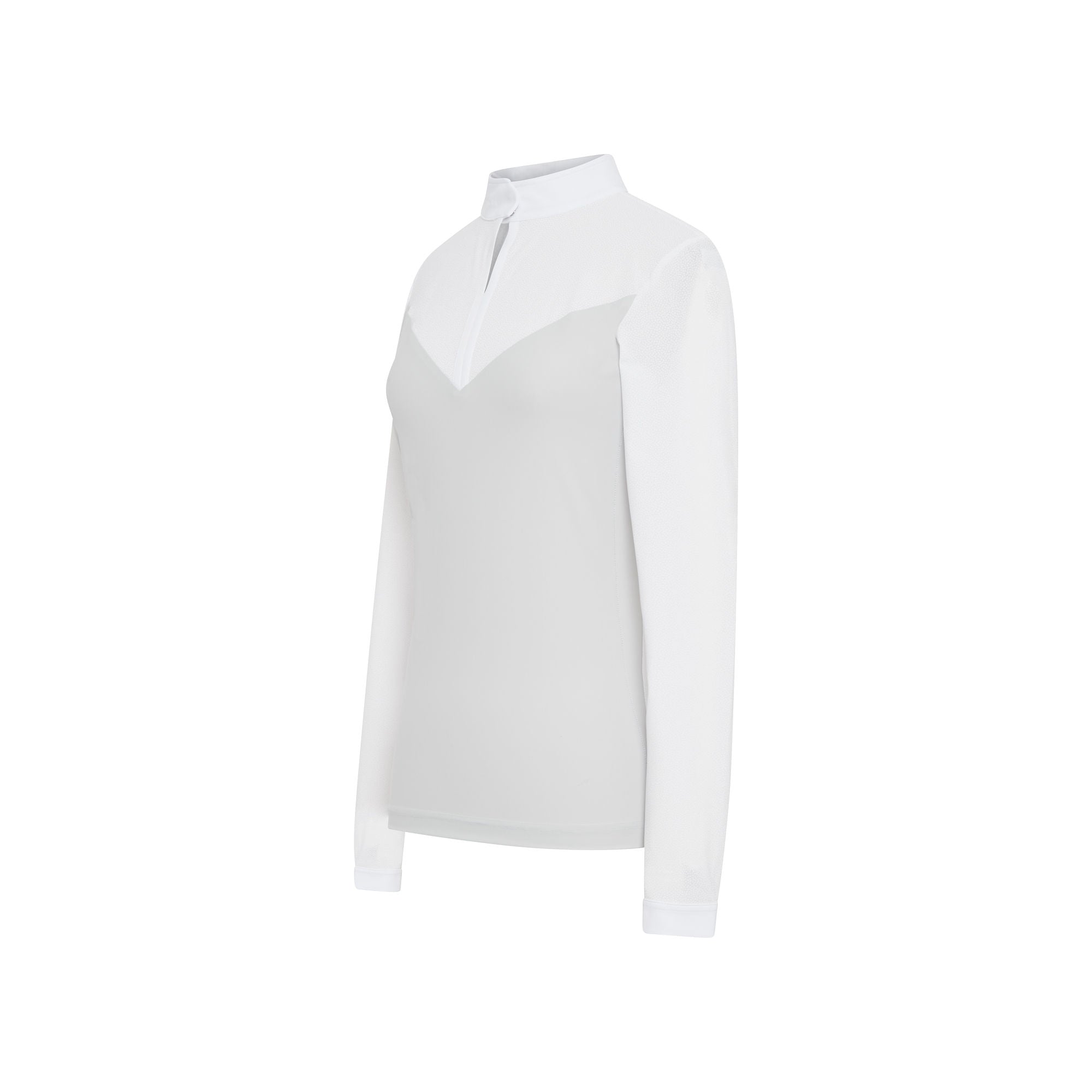 The Sidonie long sleeve competition shirt combines . The material is a high stretch, breathable, technological fabric that wicks away sweat to keep the rider dry and comfortable. Easy care, machine washable at 30'C and made in an eco conscientious manner.