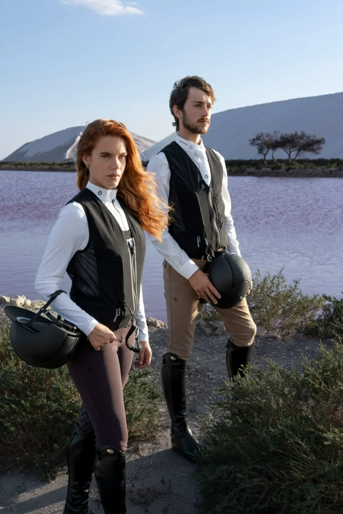 With its slim fit, SAFEFIT will fit in with your riding outfits. In competition, it can be worn discreetly under compatible jackets, while at home, it can be worn over your favorite winter down jacket, or over a t-shirt in midsummer. A great opportunity to show off your personalized details!