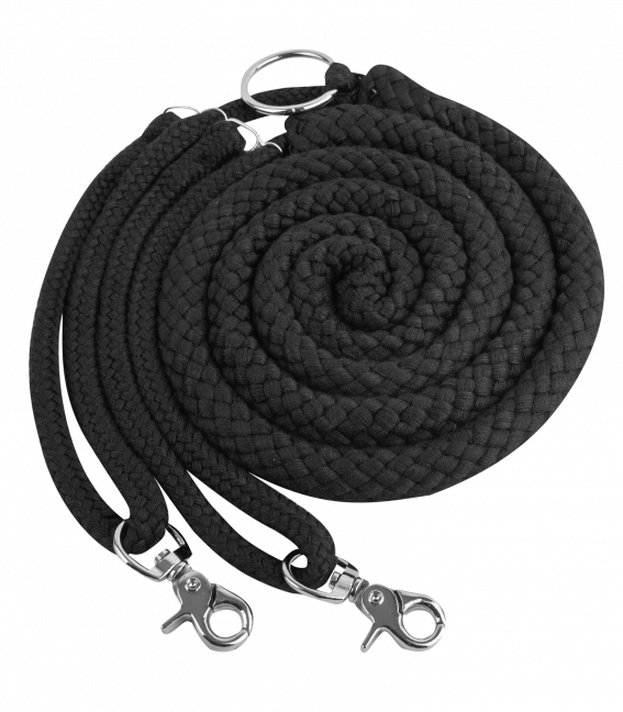 Made of thick soft rope the Waldhausen Lunge Aid encourages the horse to work without restriction while lunging. The rope goes over the horses barrel, then between its front legs clipping onto the bit or cavesson. Fully Adjustable.