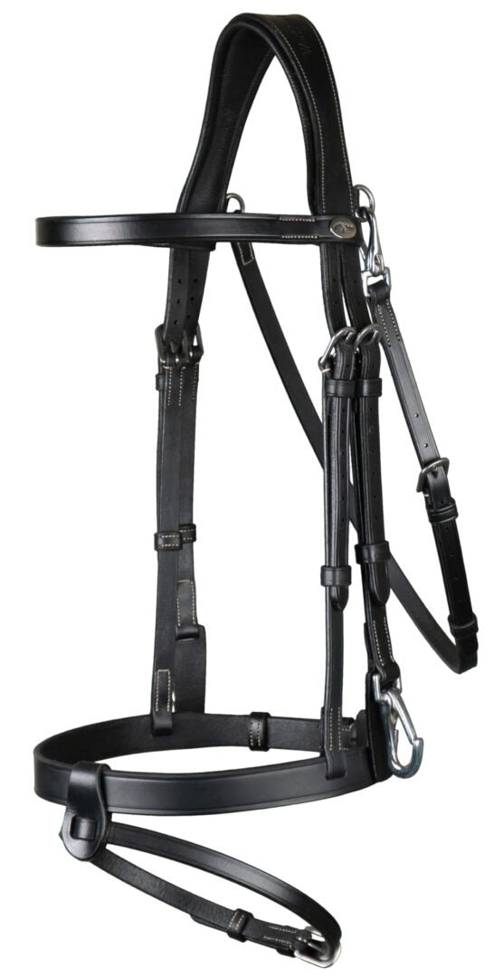 Designed for riders who demand efficiency and versatility, this flat leather bridle is made from rugged buffalo leather, giving it a strong, supple feel that stands up to the demands of daily work. With snap hooks on the cheekpieces and throatlatch, switching bits or removing the bridle is quick and hassle-free—ideal when working with multiple horses or switching disciplines throughout the day.